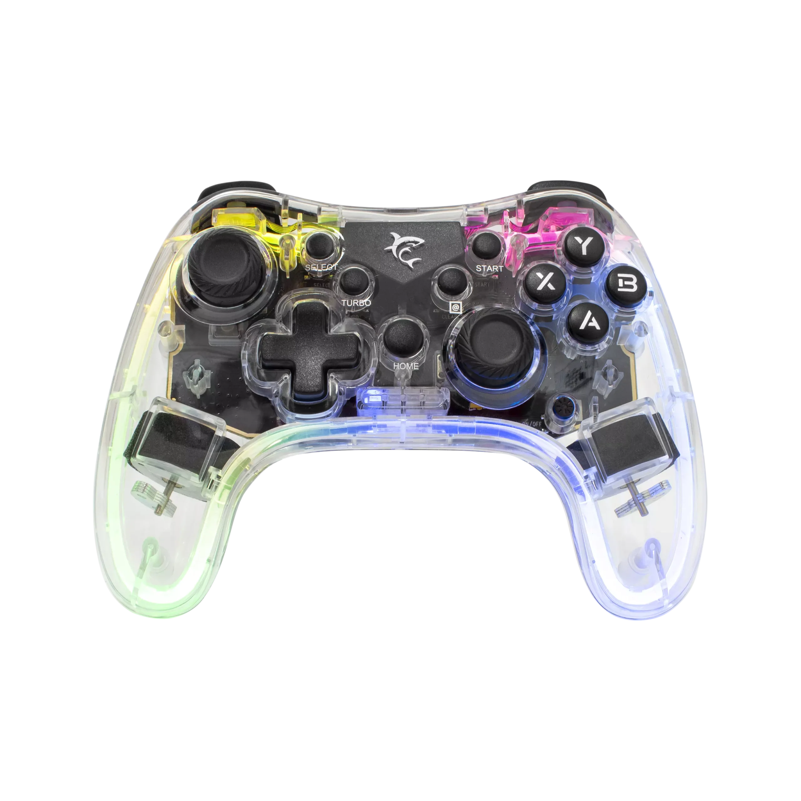 Manette de Jeu Sans Fil WHITE SHARK GPW-8039 LEGION – Technologie de Connectivité: Sans Fil – Nombre de clés: 19 – Batterie: Li-polymère, 800 mAh – Temps d’utilisation: 5-10h – Temps de charge: 2-2,5h – Interface: Bluetooth – Distance de travail: 8-10m – Compatibilité:Android, iOS 13.0+ (MFI), N-Switch (pas de capteurs), PC Windows (filaire), console PS4/PS3 – Eclairage LED – Matériel: Plastique – Longueur du câble: 1 m – Dimensions: 152 x 115 x 58 mm – Poids: 220 g – Couleur: Boîtier transparent