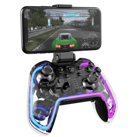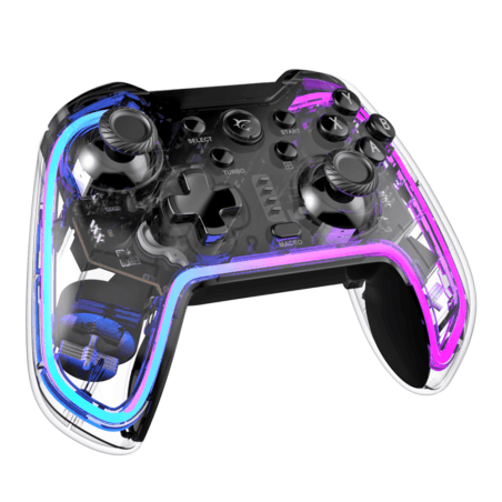 💡 Domine tous tes jeux avec une manette performante, ergonomique et stylée grâce à son boîtier transparent rétroéclairé RGB !