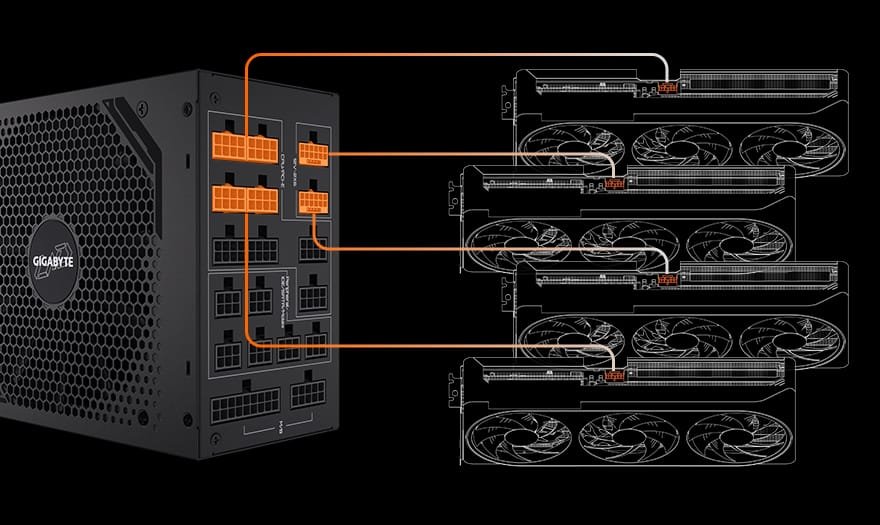 C’est le futur, sans adaptateur. La UD1600GM PG5 est équipée de deux connecteurs 16-pin (12VHPWR) natifs, capables de fournir chacun jusqu’à 600W. C’est la solution la plus propre, la plus sûre et la plus performante pour alimenter les cartes graphiques les plus puissantes du marché.