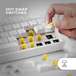 Fusionnant le retour sonore cliquable d’un switch mécanique avec le toucher doux d’un clavier à membrane, chaque frappe est aussi satisfaisante qu’efficace. C’est le choix idéal pour ceux qui recherchent de la réactivité sans la rigidité des claviers mécaniques purs.