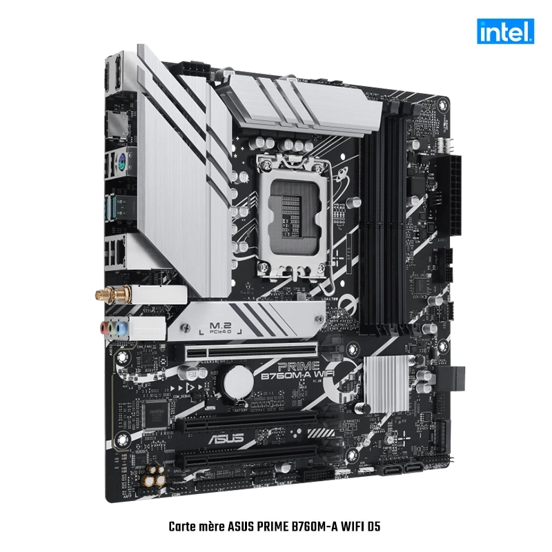 Avec la ASUS PRIME B760M-A WIFI, une carte mère conçue pour améliorer votre expérience de bureau, vous pouvez libérer l’amour de l’informatique. Cette merveille Micro ATX, dotée du chipset Intel B760 Express et prenant en charge les processeurs Intel de la série 1700, est conçue à la fois pour la productivité professionnelle et les jeux intenses.