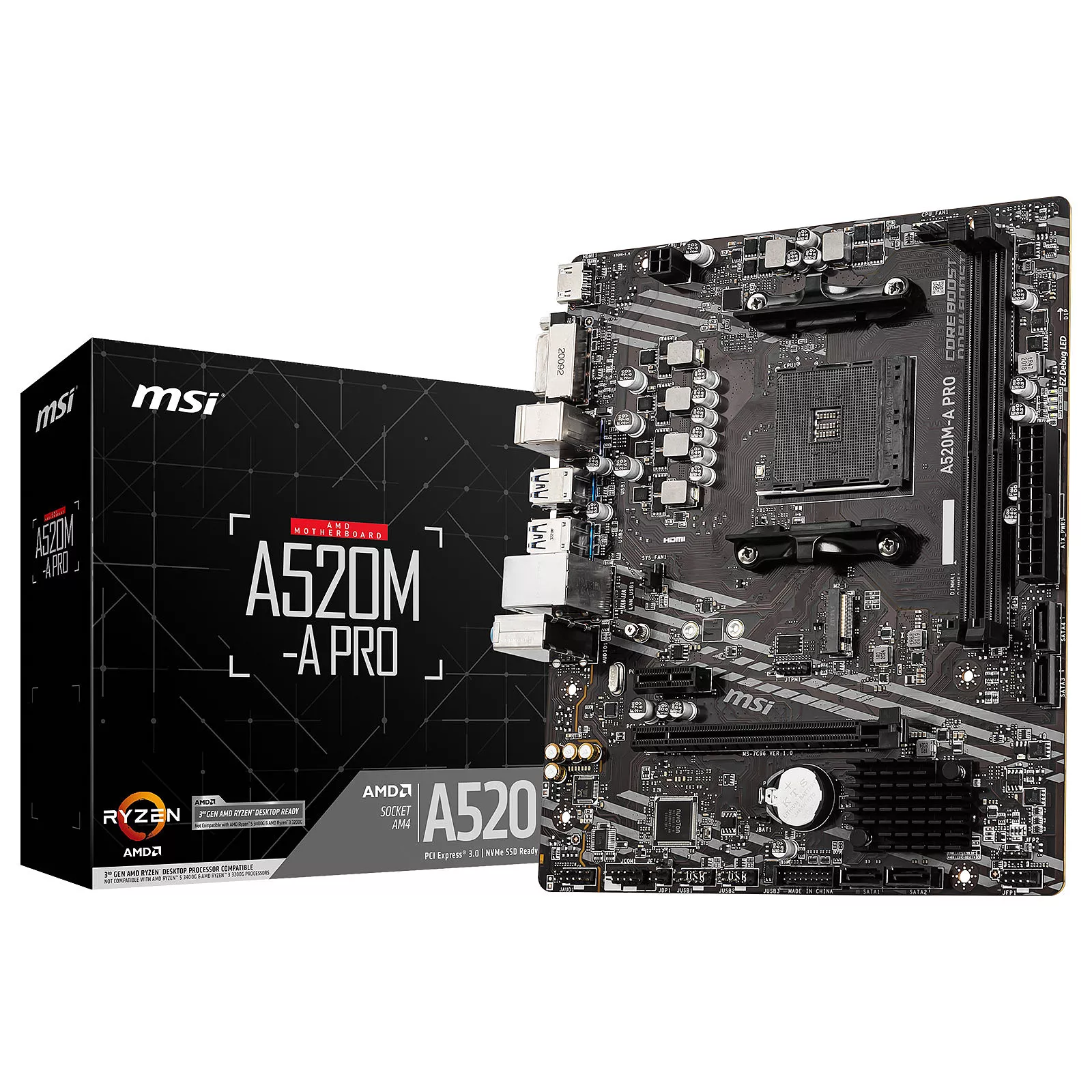 Prête à accueillir les processeurs AMD Ryzen 3000/4000, la carte mère MSI A520M-A PRO permettra l’assemblage d’une configuration multimédia ou bureautique à moindre coût tout étant équipée d’un processeur performant et en conservant une taille réduite.