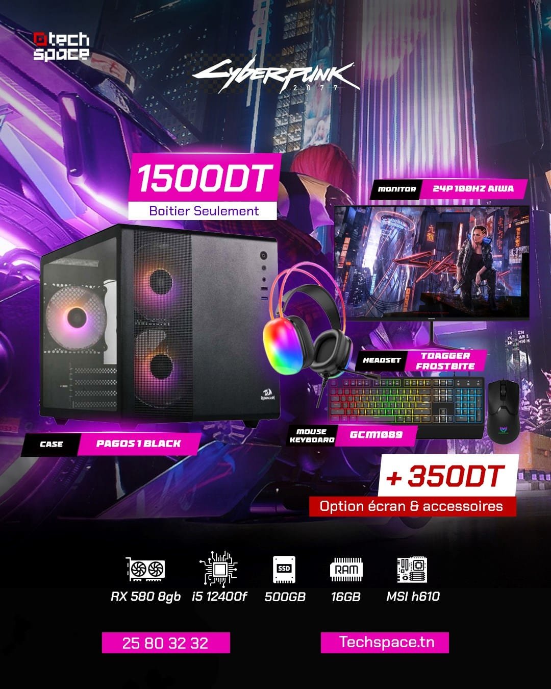 Découvrez ce setup gaming conçu pour les amateurs de cyberpunk et les jeux compétitifs. Équipé d’un processeur i5 12400F et d’une RX 580 8GB, il offre une performance équilibrée pour les gamers à la recherche de fluidité, de design RGB et d’accessoires prêts à l’emploi. Parfait pour les débutants ou les setups secondaires performants.