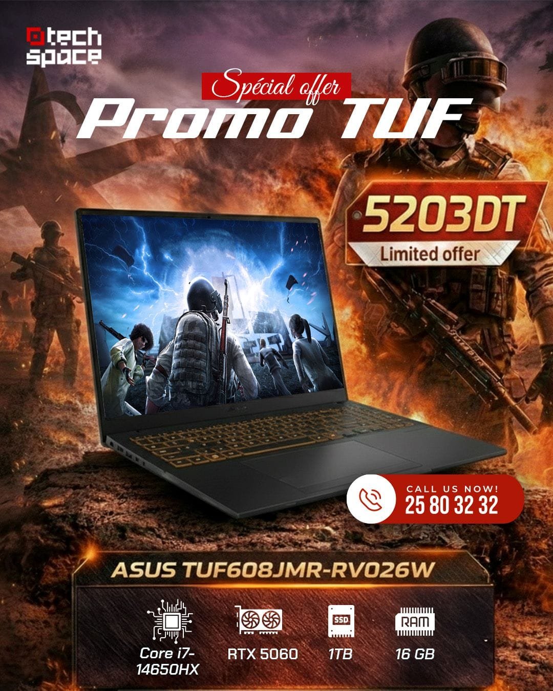 L’Asus TUF608JMR-RV026W est l’allié des joueurs qui recherchent un PC robuste et performant. Le duo i7-14650HX et RTX 5060 offre un excellent confort de jeu sur son grand écran 16 pouces. 🖤🌪️