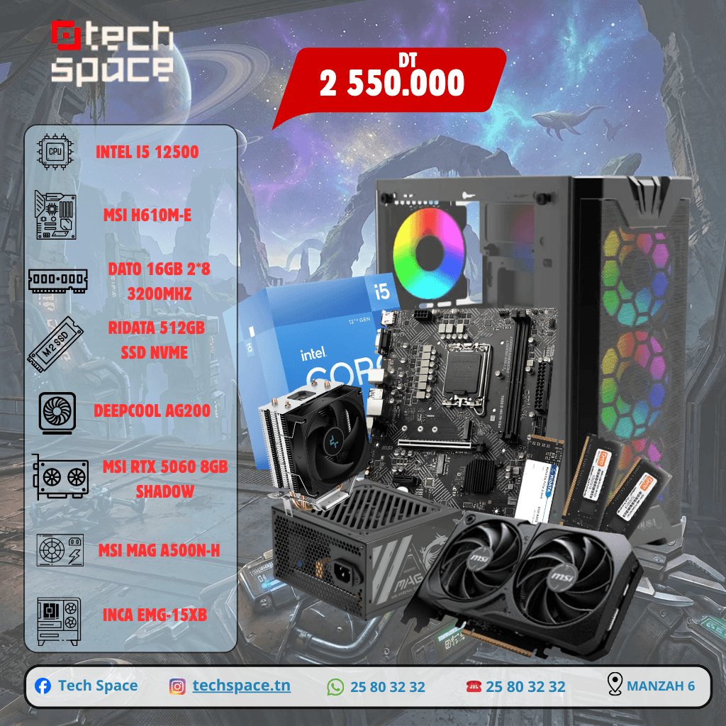 You're viewing: INTEL I5 12500 | RTX 5060 | 16GB RAM | 512GB 2.550,000 TND